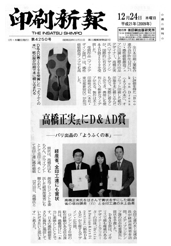 2009年12月24日印刷新報にて高橋をご紹介していただいております