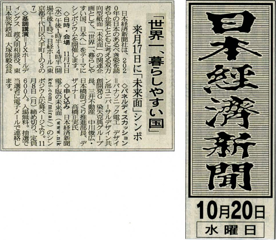 「2020年日本」へのアイデアを、読者や企業と考えていく日本経済新聞「未来面」。