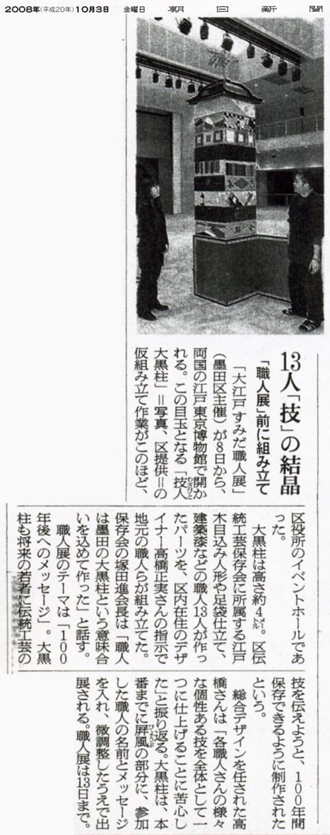 「大江戸職人展」で展示する“技人大黒柱”についてご紹介頂きました。