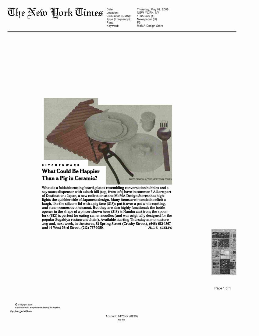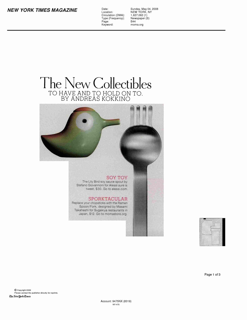 MoMAの方から掲載の報告を頂き「Ramen Spoonは、アメリカでは非常に“ポピュラー”な食器として、浸透している」とのお言葉を頂きました。