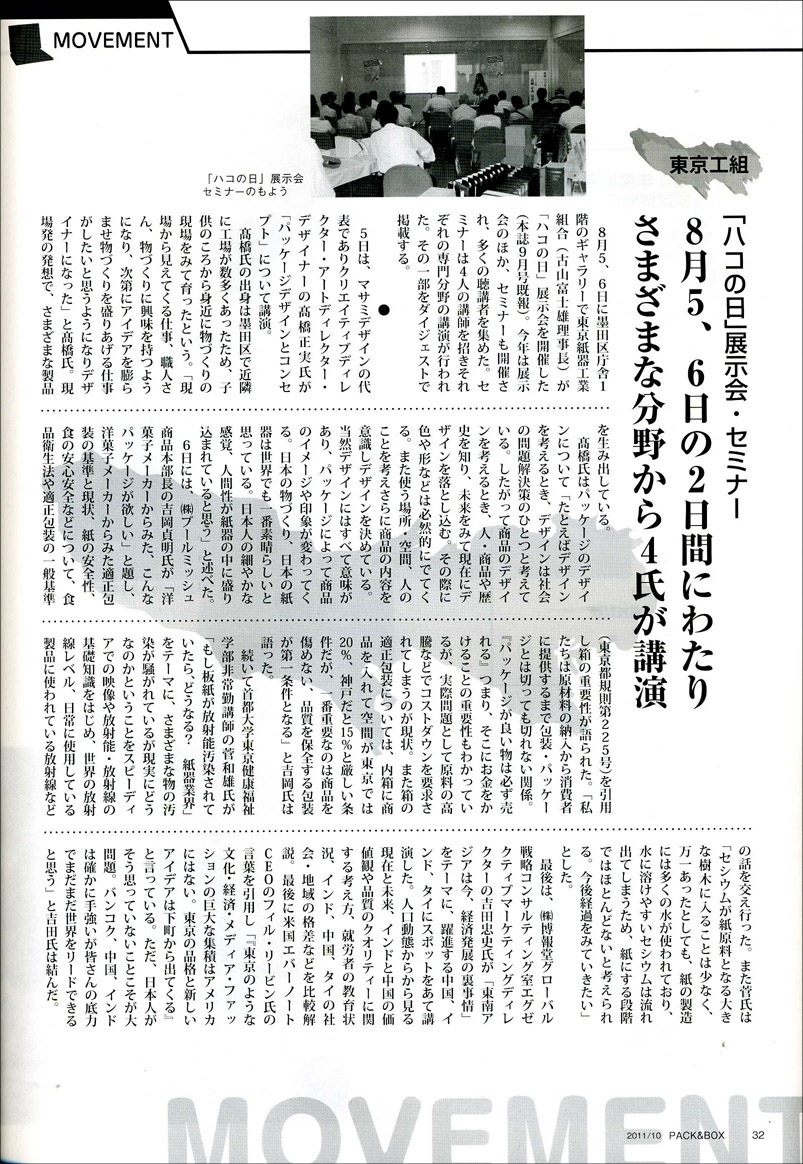 高橋の講演内容や各社の様々なパッケージデザインがご紹介されております。