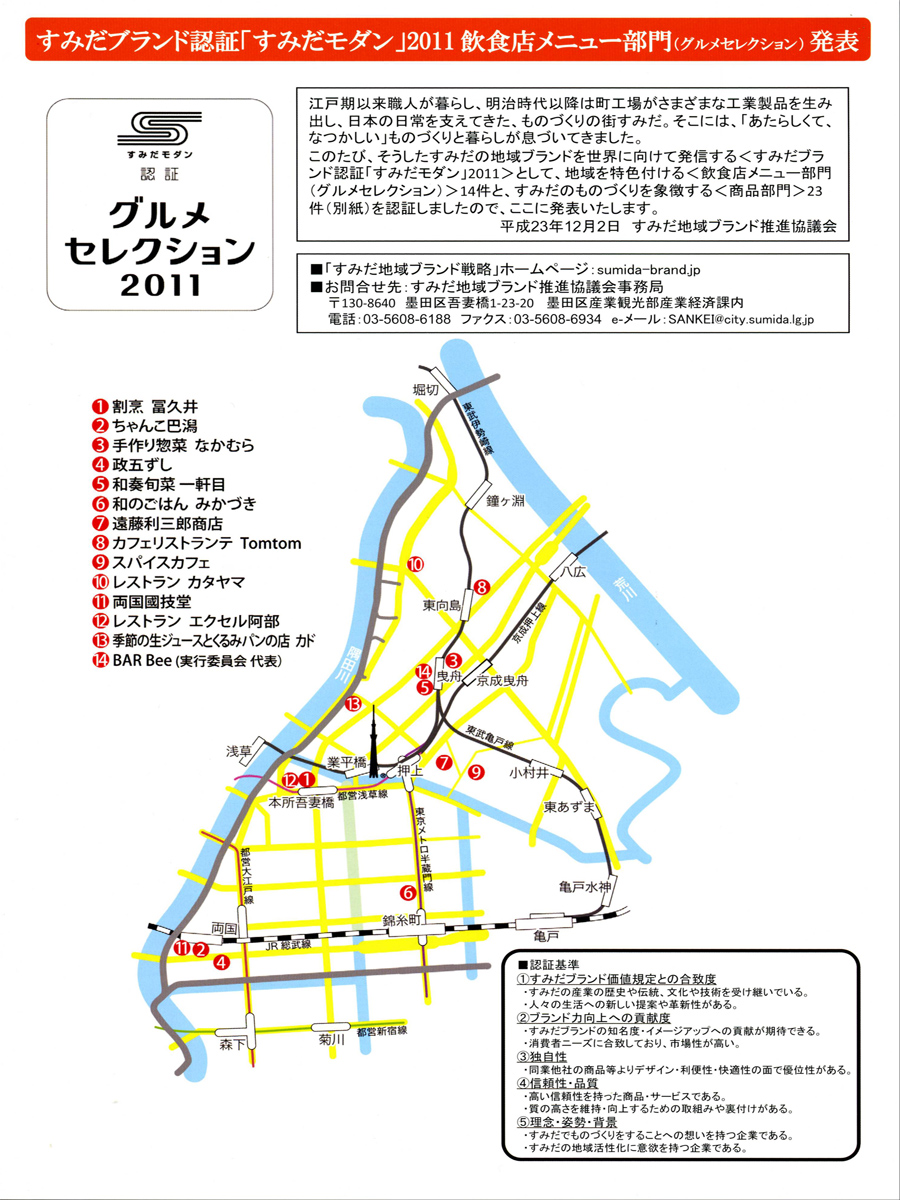「すみだモダン」2011商品部門・飲食店メニュー部門の