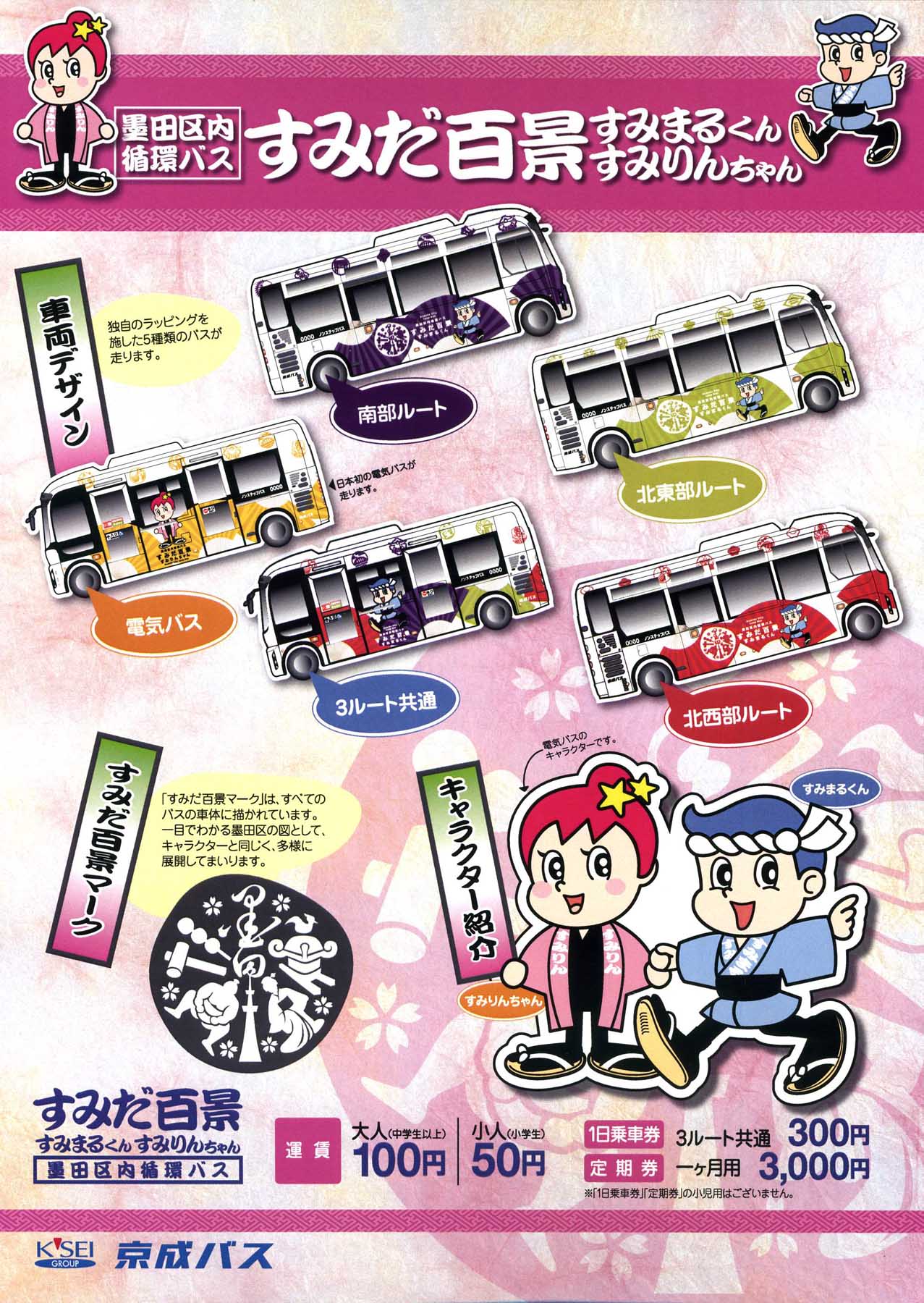 そのバスと、バスが擬人化されたキャラクター「すみまるくん」「すみりんちゃん」、