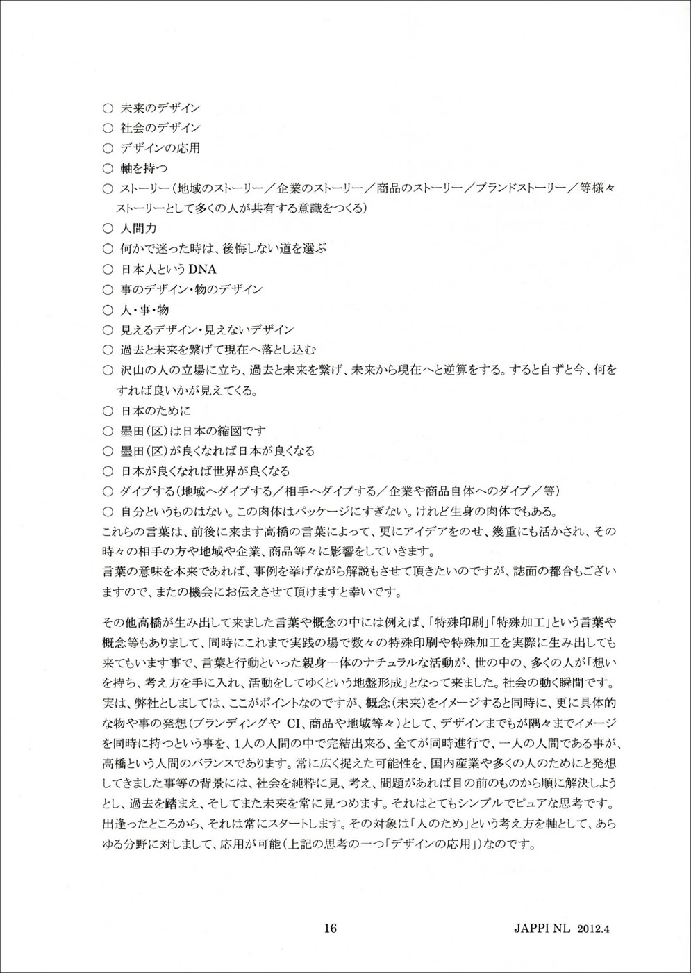 内容につきましては、高橋の近くで長年仕事をしている立場から、「高橋語録」なるものが
