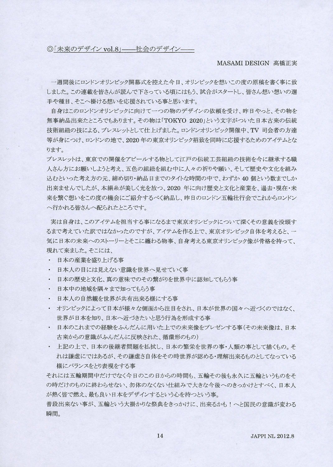 高橋連載「未来のデザインVol.8〜社会のデザイン〜」 (第八回目)を