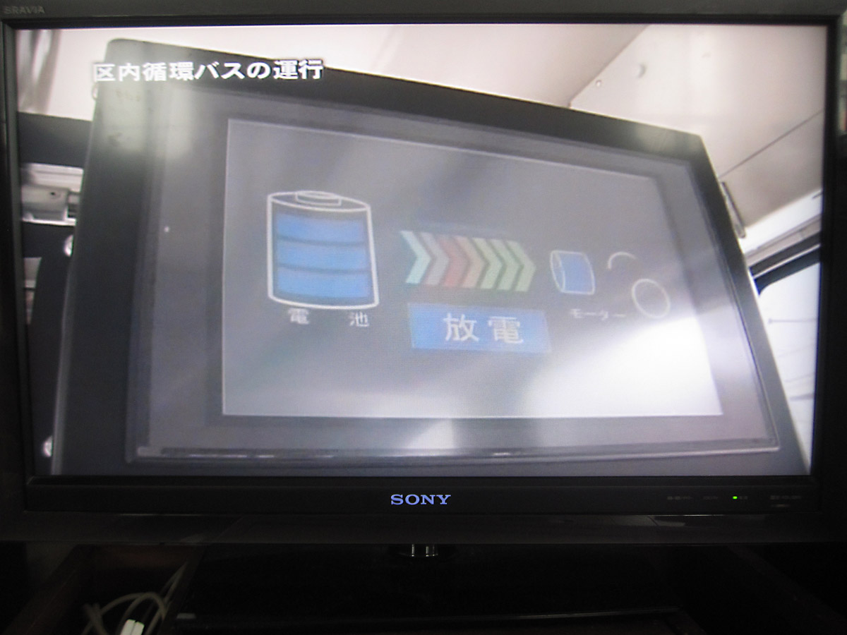 電気バスすみりんちゃんの車内、運転手さんの席は後方部に電池、放電について