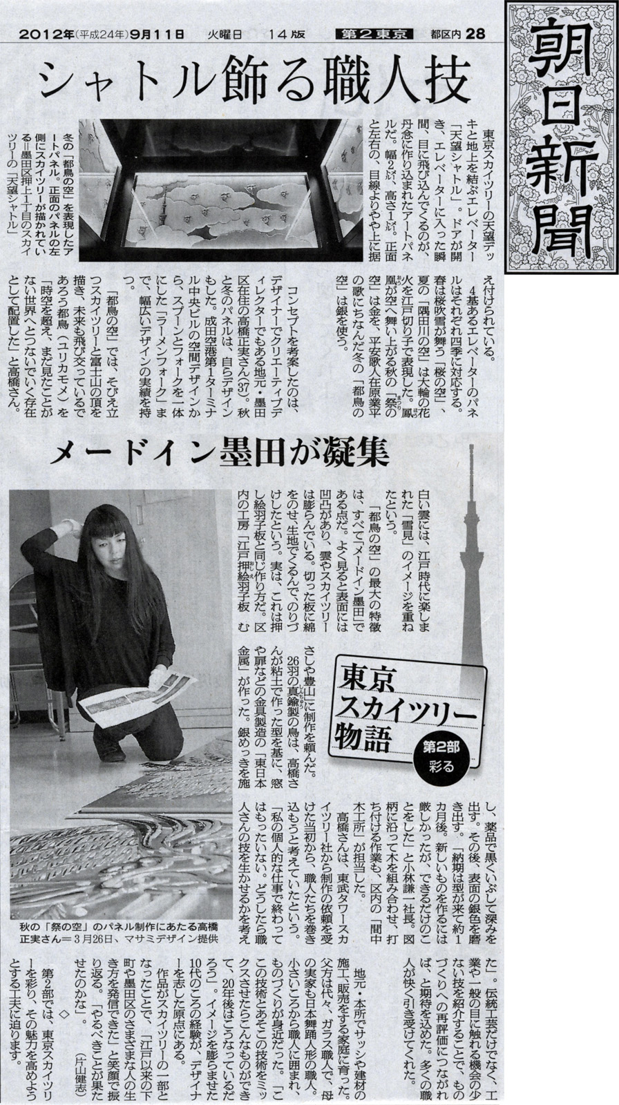 朝日新聞で連載されております「東京スカイツリー物語」へ