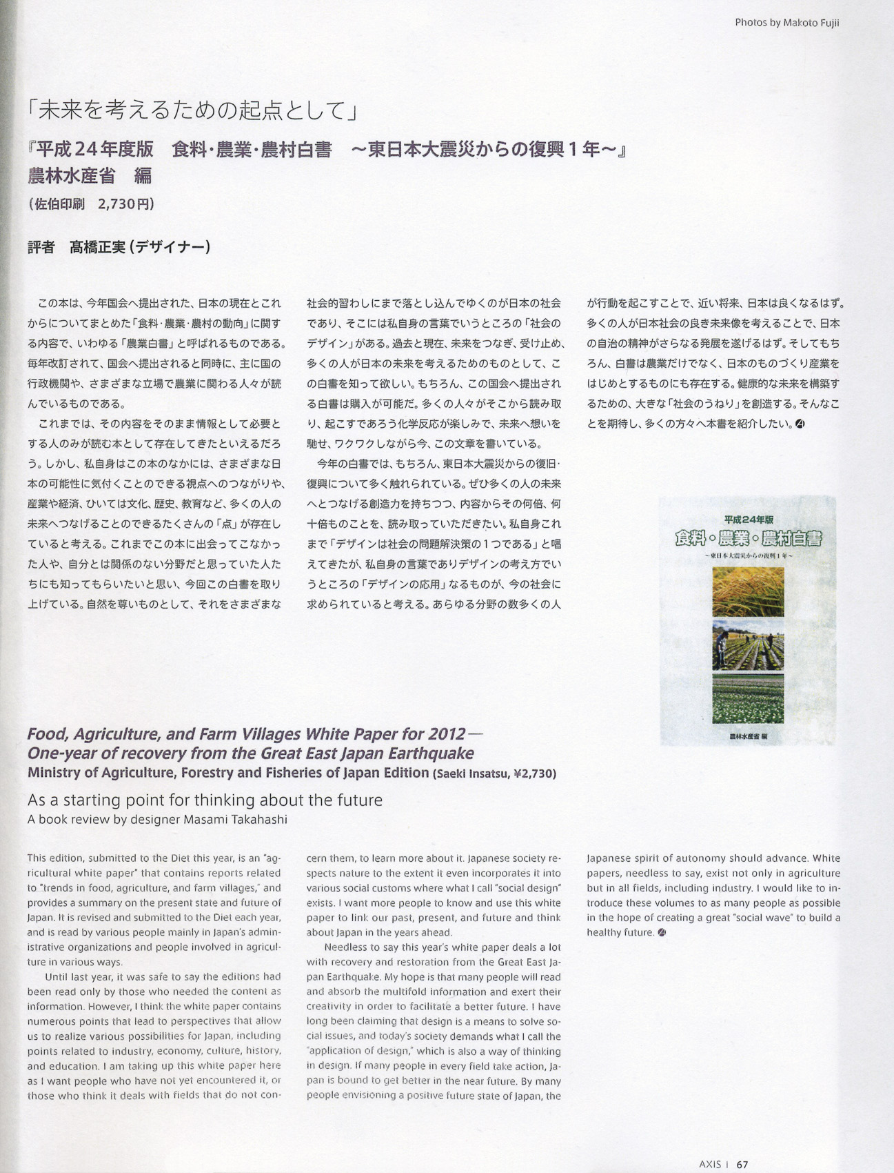 日本の農業に纏わる未来への指針等を書いたもので、弊社はその内容作りの仕事としまして、