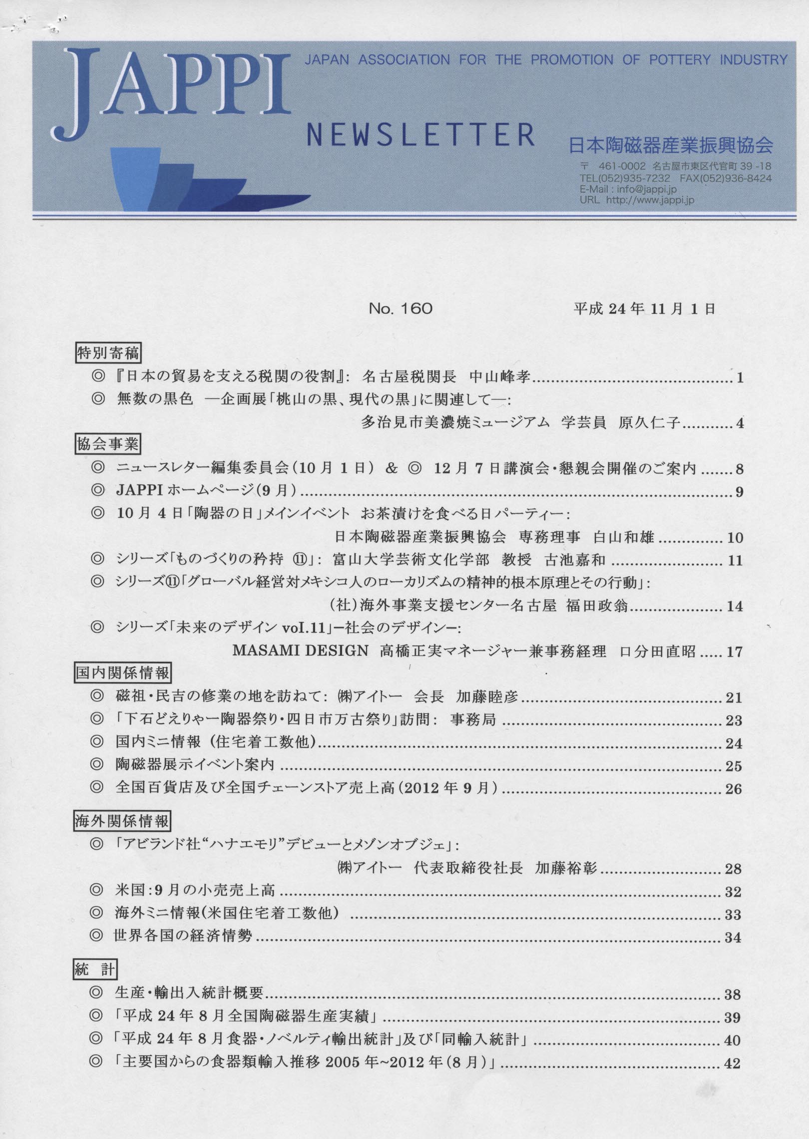 日本陶磁器産業振興協会(JAPPI)『NEWSLETTER 160号』での
