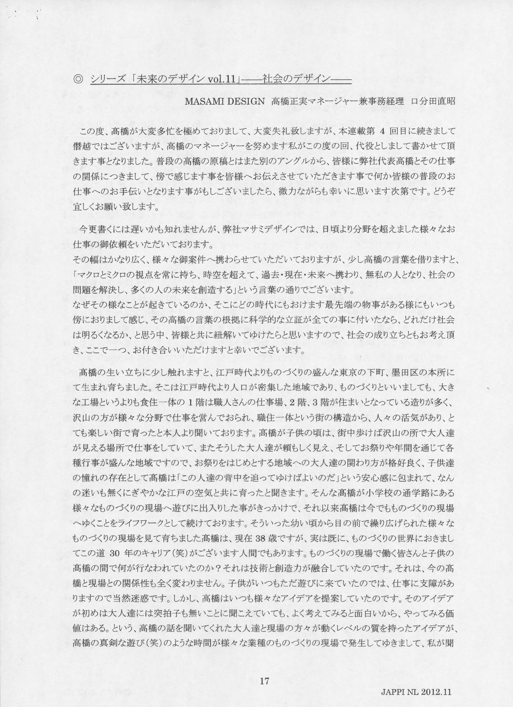 高橋連載「未来のデザインVol.11〜社会のデザイン〜」(第十一回目)を