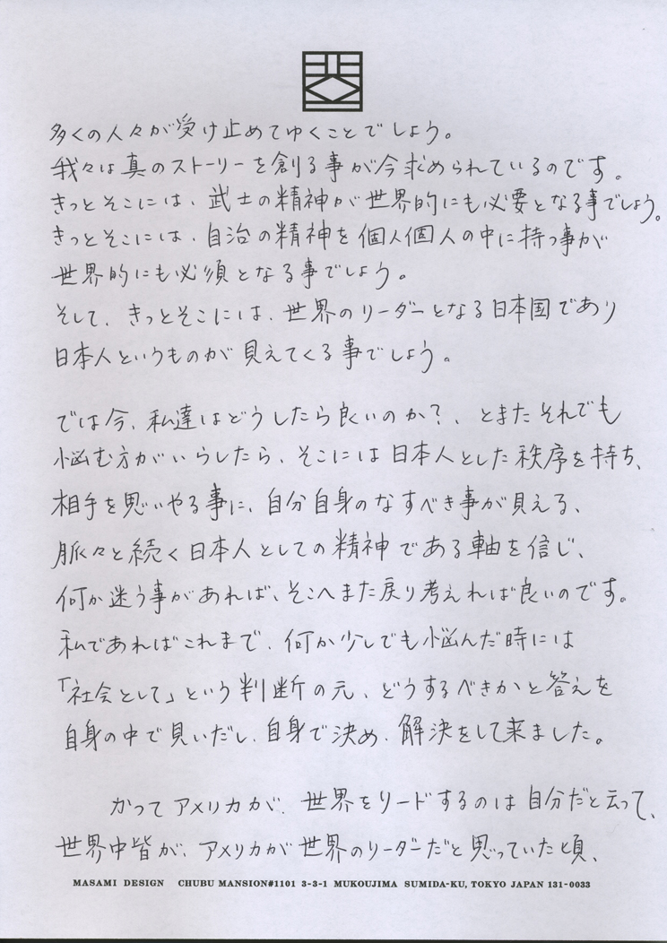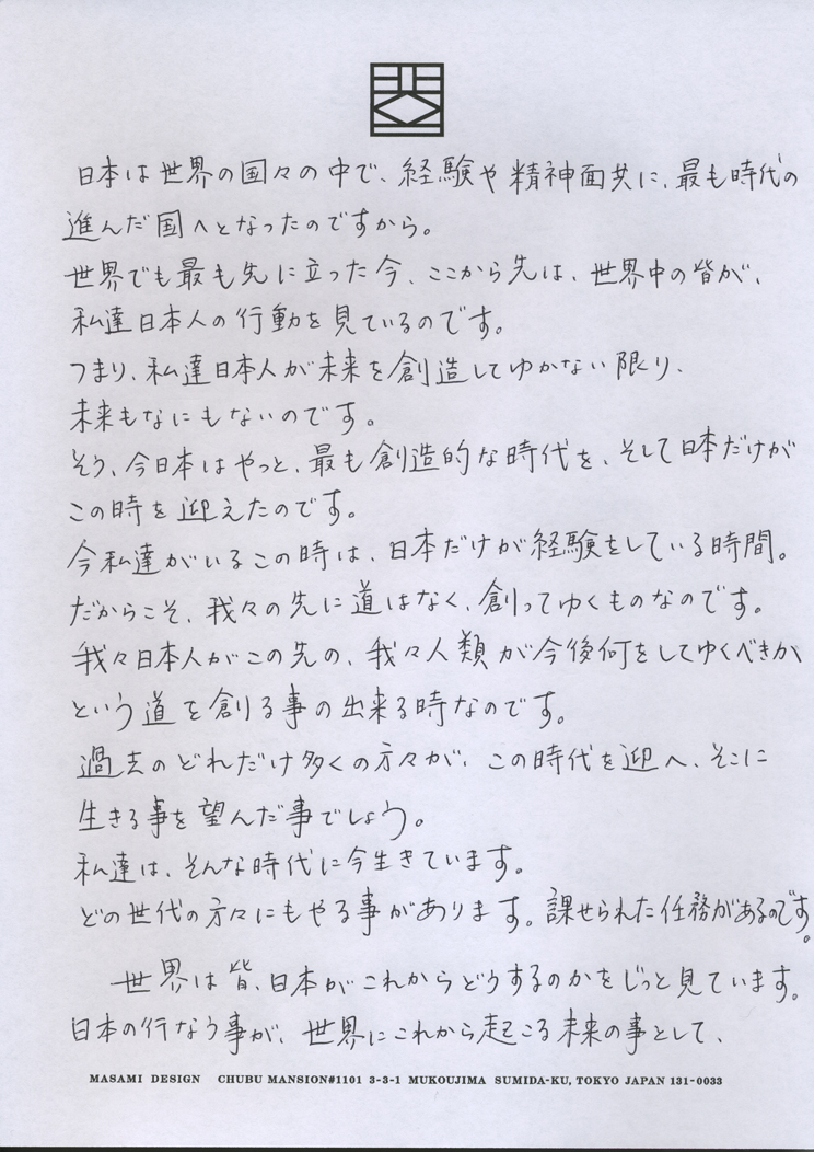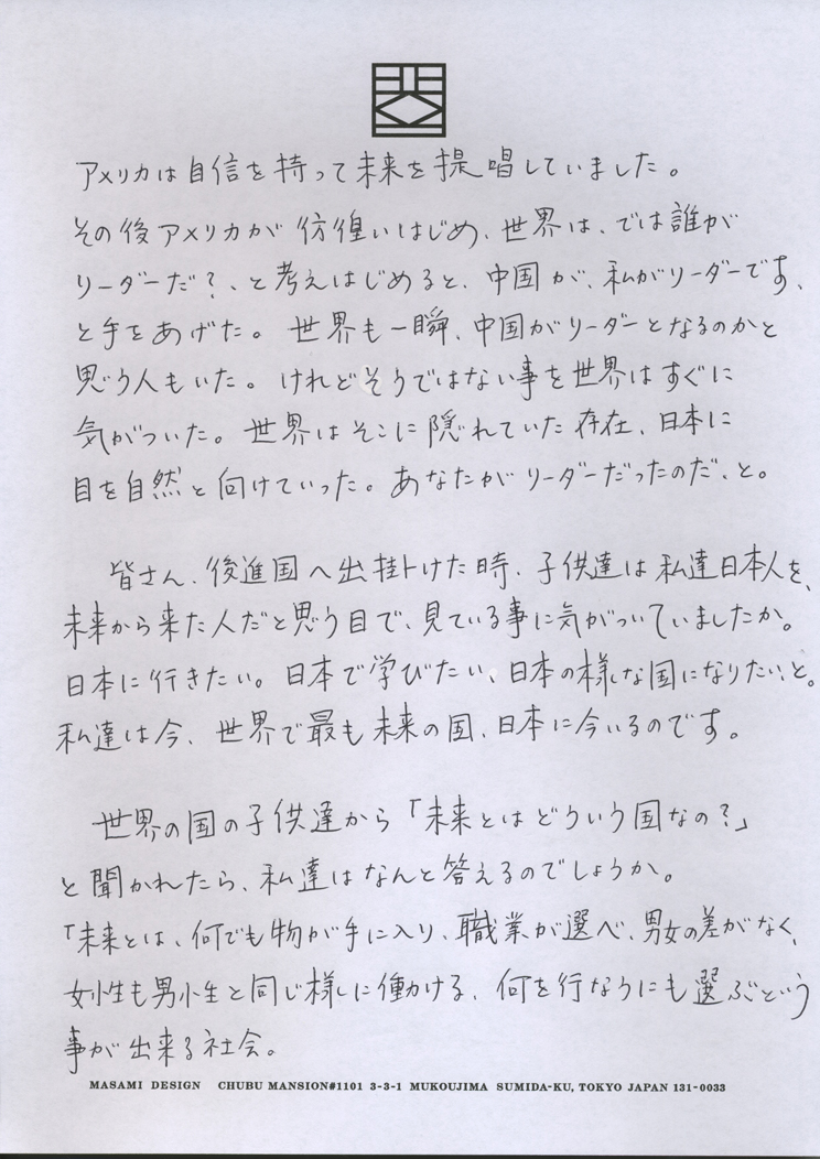 非常に今日も前向きです。 私達の母国への想いや未来へ繋がりますイメージの言葉を