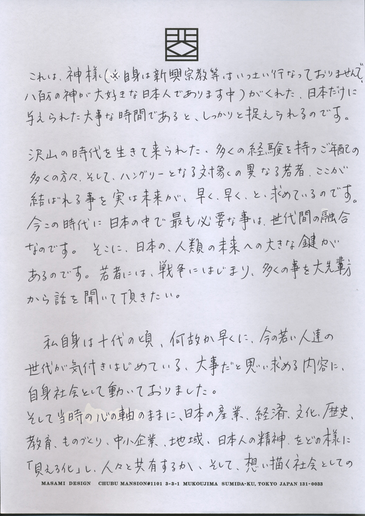皆様へのメッセージを書きましたのでこちらでご紹介をさせて頂きます。