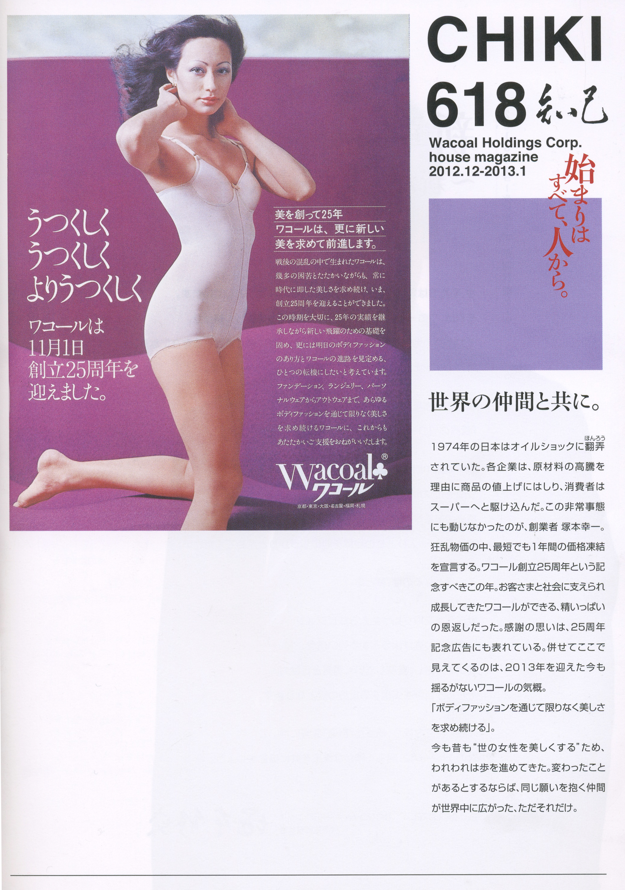 この度『CHIKI618号』はワコール社の歴史をご紹介されております歴史的な内容で、