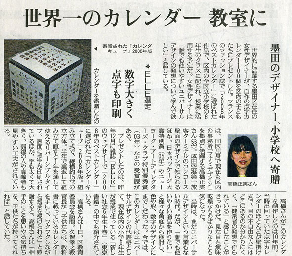 カレンダーキューブ(高橋デザインの点字付きカレンダー)を墨田区の教育委員会へ寄贈させていただいた様子をご紹介いただきました(カレンダーは墨田区内の全小学校・中学校・幼稚園へ配られます)。
