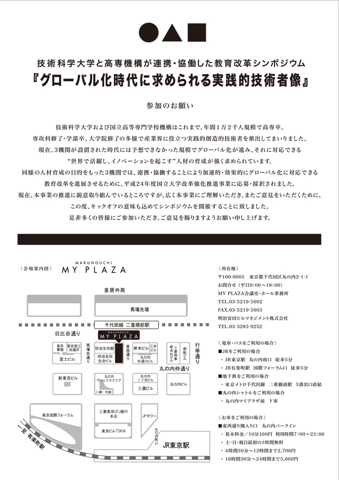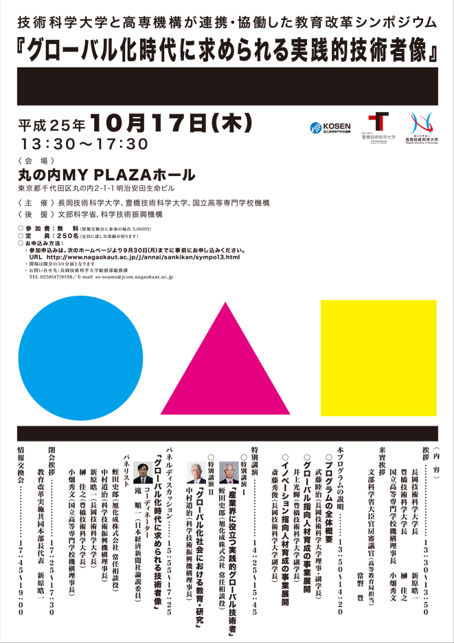 技術科学大学と高専機構が連動致しまして、教育改革シンポジウムが開催されます。