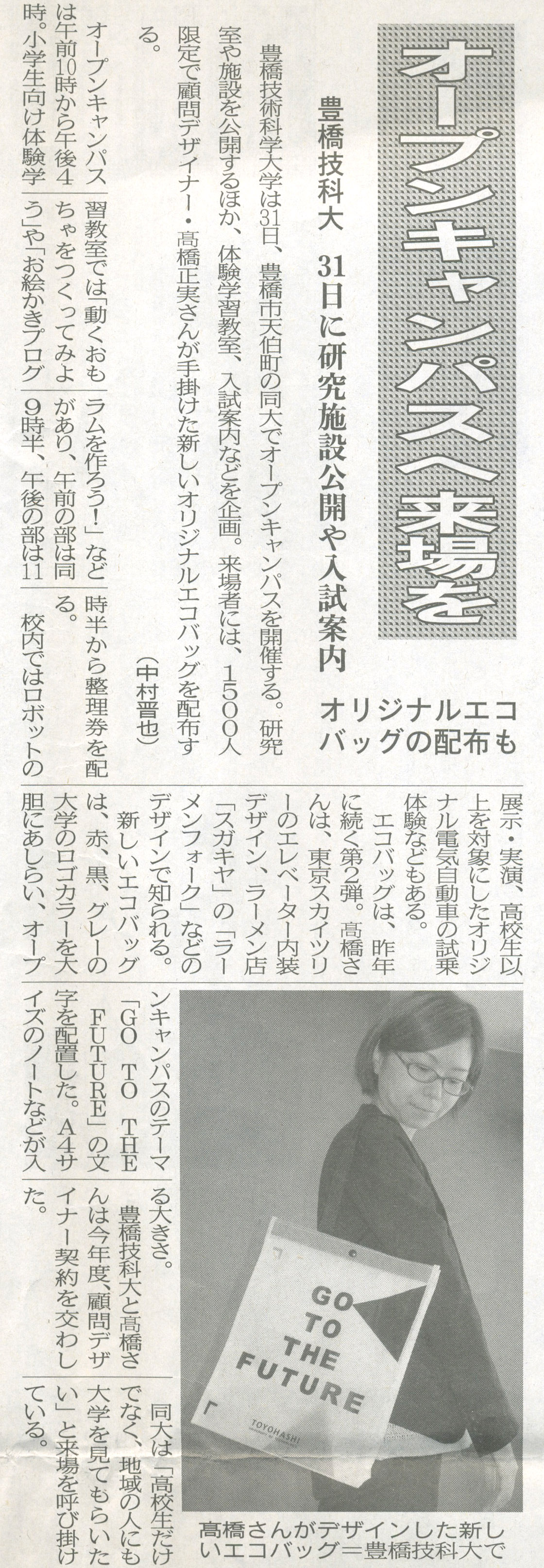 今年の豊橋技術科学大学ではこちらのエコバッグのデザインと連動致しまして、