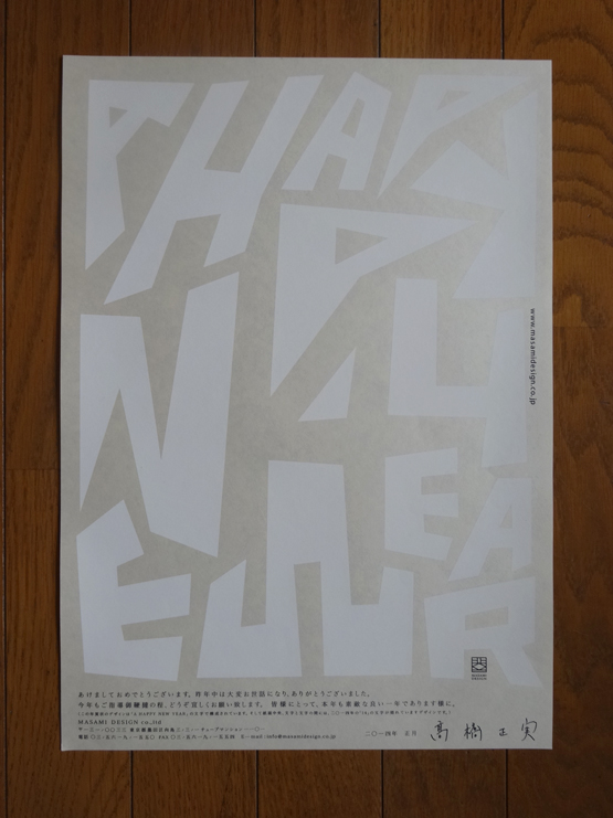 また、こちらの年賀状の実物は、毎年恒例の竹尾見本帖さんで開催されます、