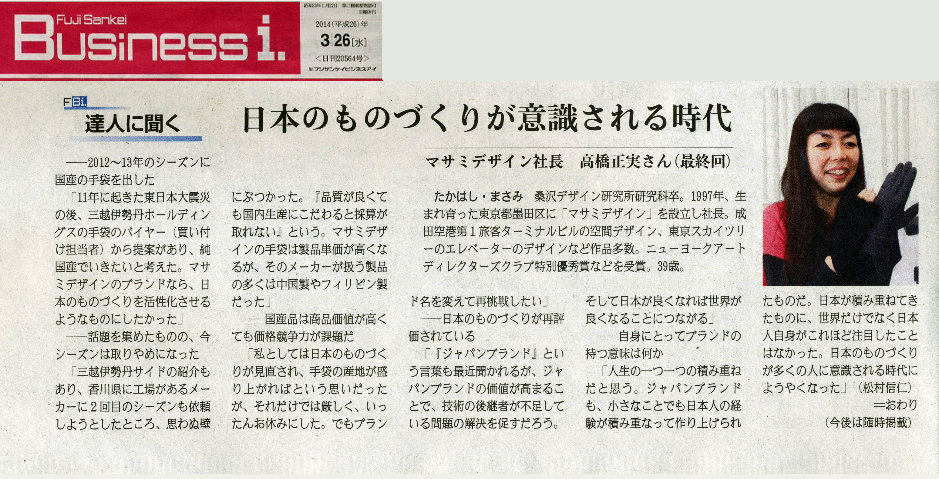 産經新聞経済紙『フジサンケイビジネスアイ』の連載コーナー「達人へ聞く」にて、