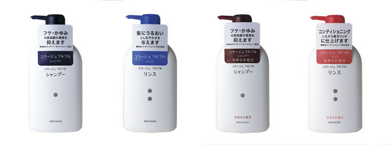 上画像左から:コラージュフルフル すっきりタイプシャンプー、リンスなめらかタイプシャンプー、リンス
