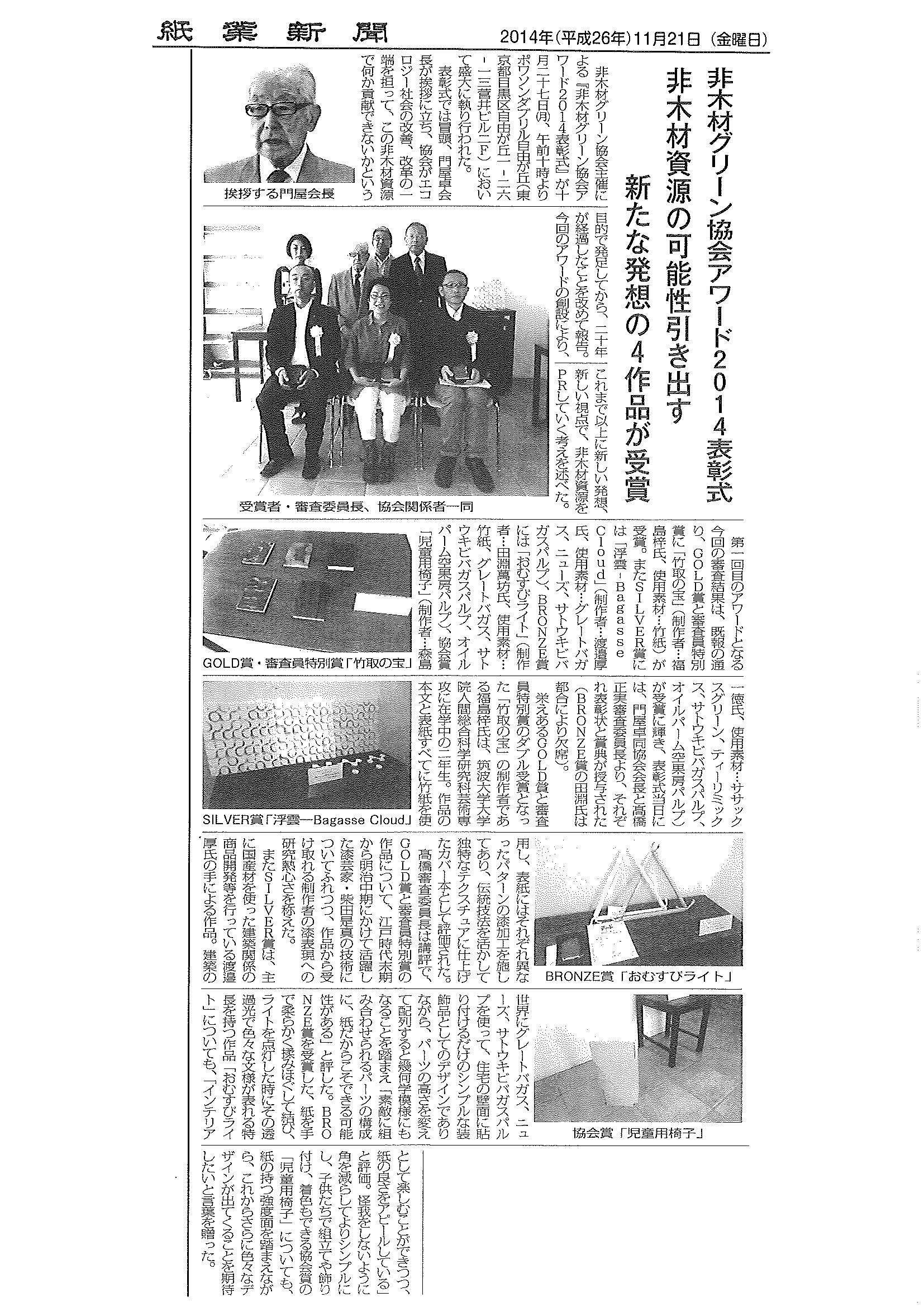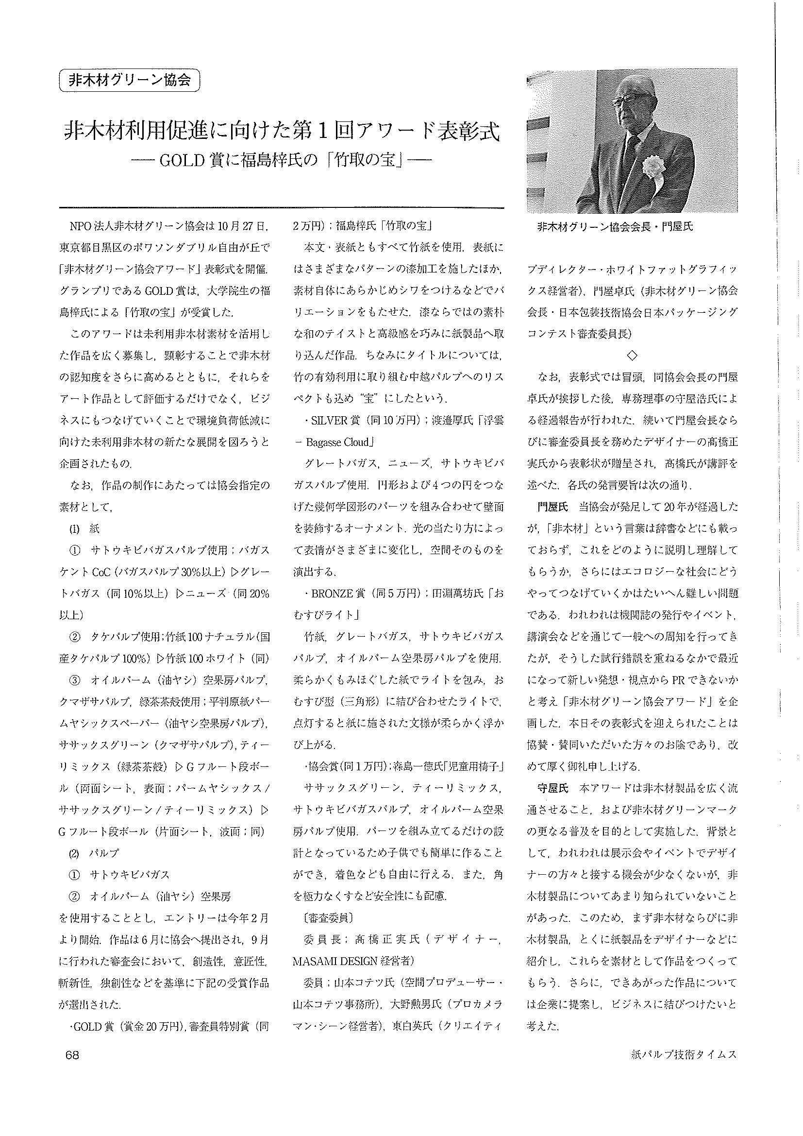 素晴らしい内容の作品が集まり、良いアワードのスタートとなりました事をここにご報告をさせて頂きますと共に、皆様に非木材をもっと知って