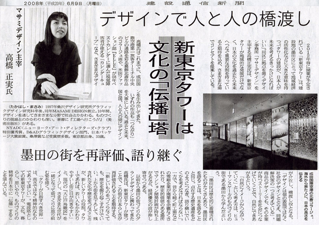「東京スカイツリー」(新東京タワー正式名称)についての取材を、デザイナーと云う立場から地域とタワーの繋がりについて、取材をいただきました。