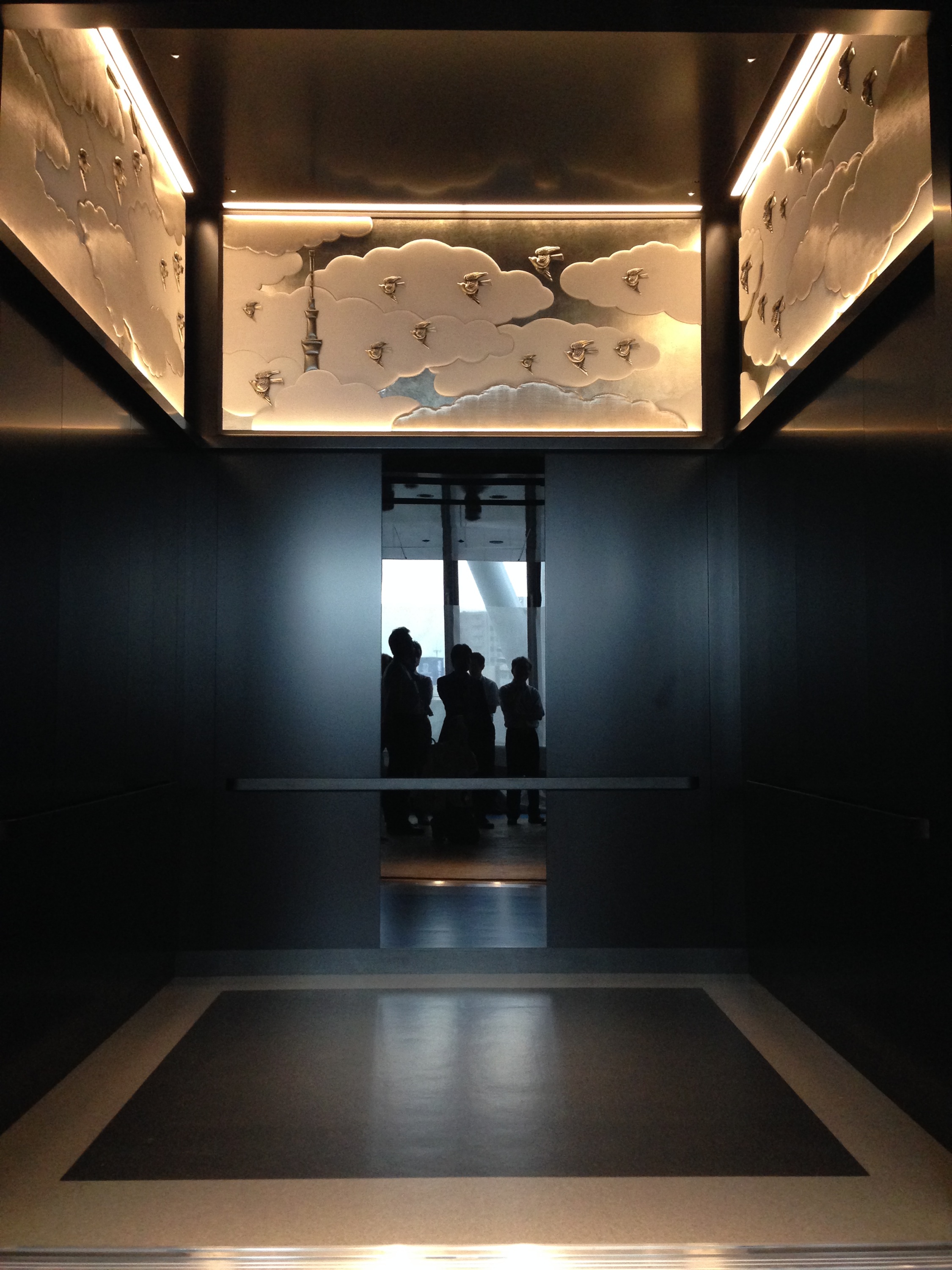 エレベーター4基のデザインは今回、世界一の技術でエレベーターを