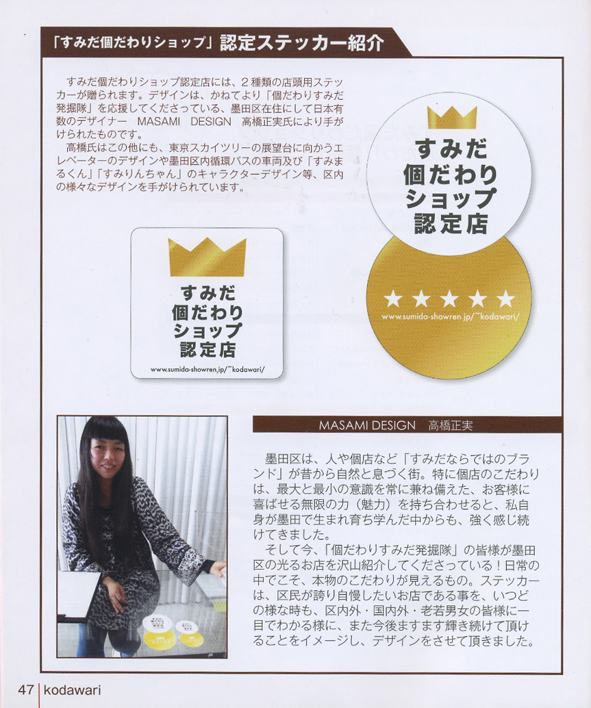 弊社高橋デザインの「すみだ個だわりショップ認定店ステッカー」が