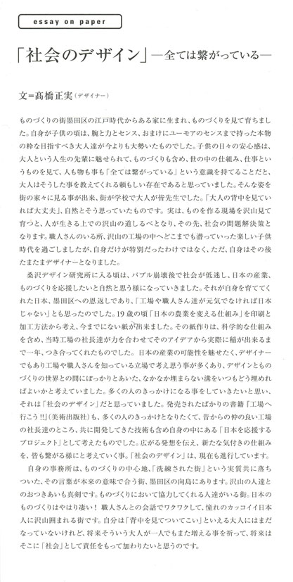 「社会のデザイン」ー全ては繋がっているーと題した高橋が書いた文章が掲載されました。