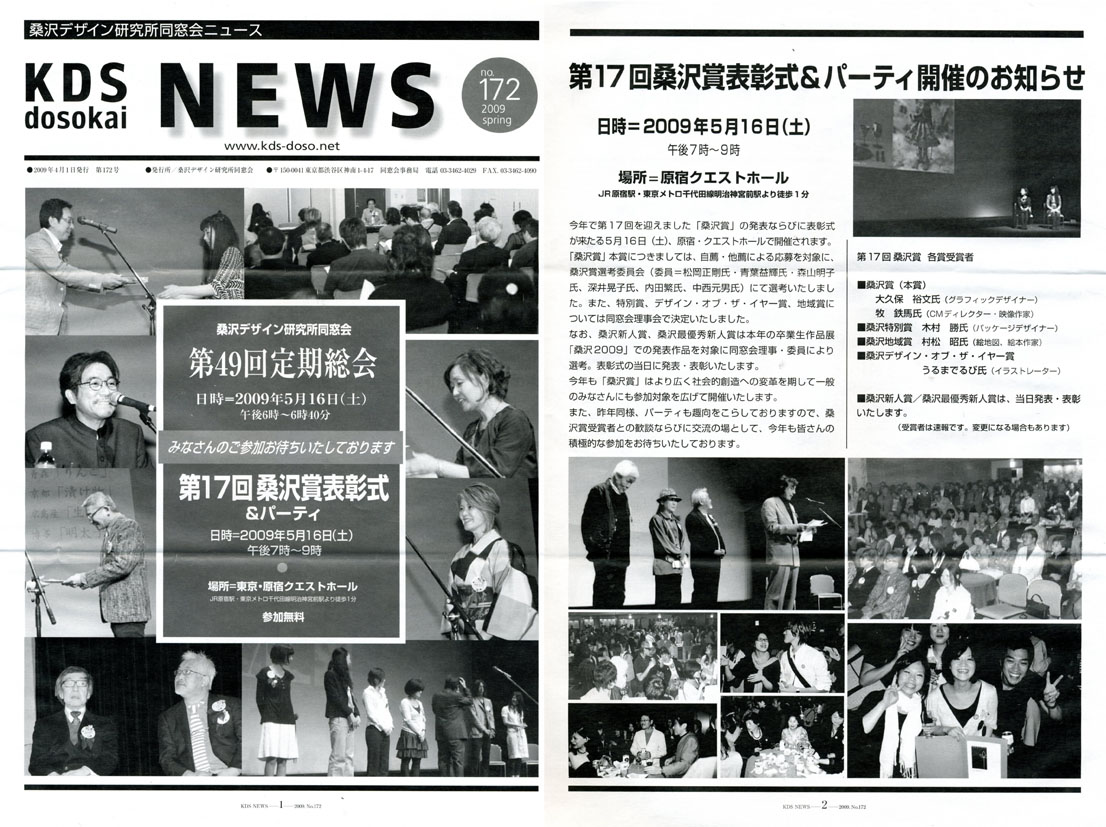 『桑沢デザイン研究所同窓会ニュース』172号にてご紹介いただきました。