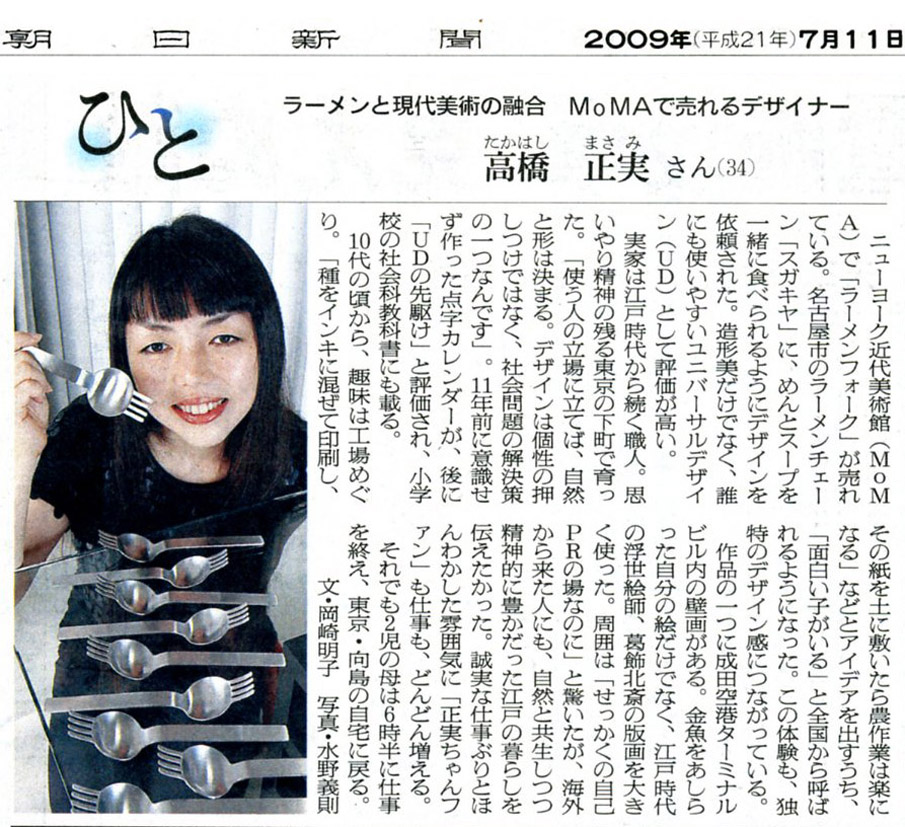 『朝日新聞』にてご紹介頂きました2009年7月11日の朝日新聞朝刊2面「人」という欄で、高橋が紹介されました。