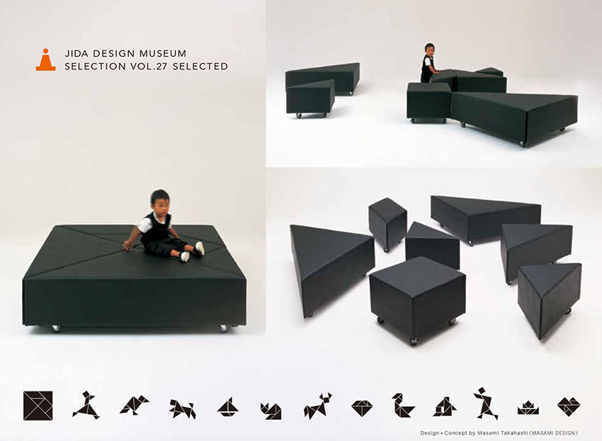 みなさん、画像の、髙橋正実(以下、髙橋)デザイン「タングラムソファ」( クライアント:ピノ・コーポレーション 代表松永勝一氏 )も選んでくださり、こちらにご案内させていただきます。