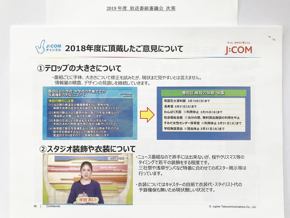 JCOMの放送番組審議会の資料を掲載します。