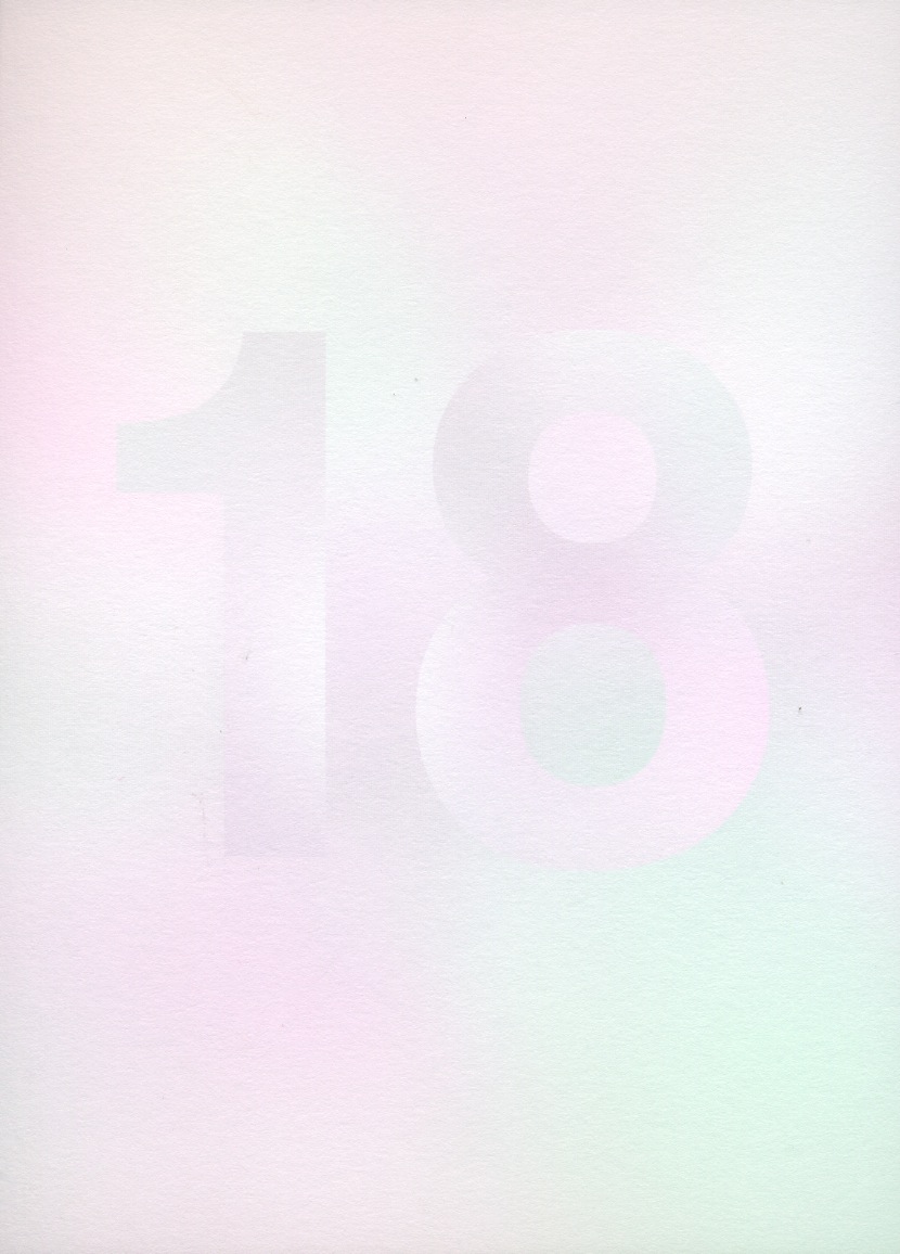 桃や緑に光るグラデーションの中に 2018年「18」の文字が見えるデザインです。