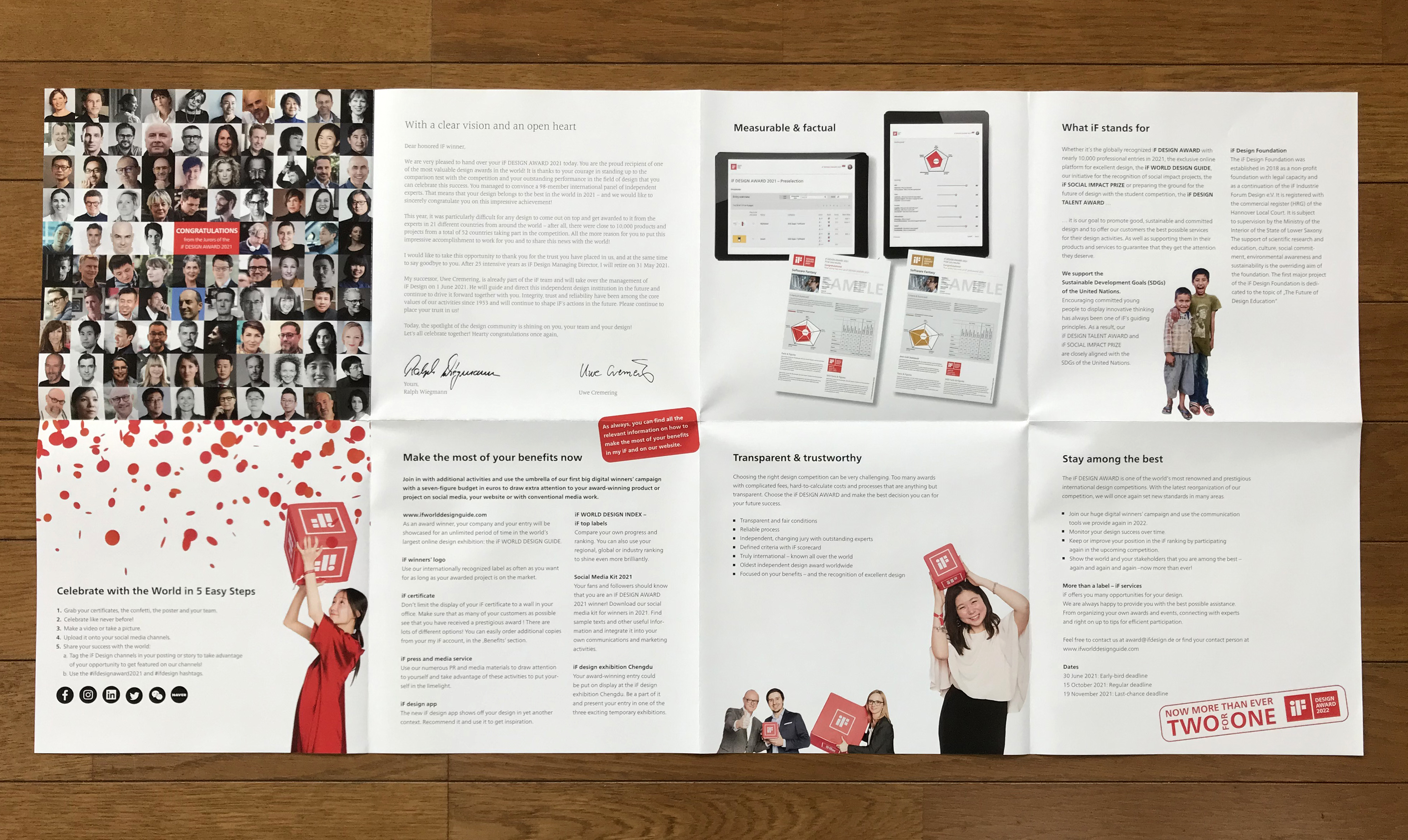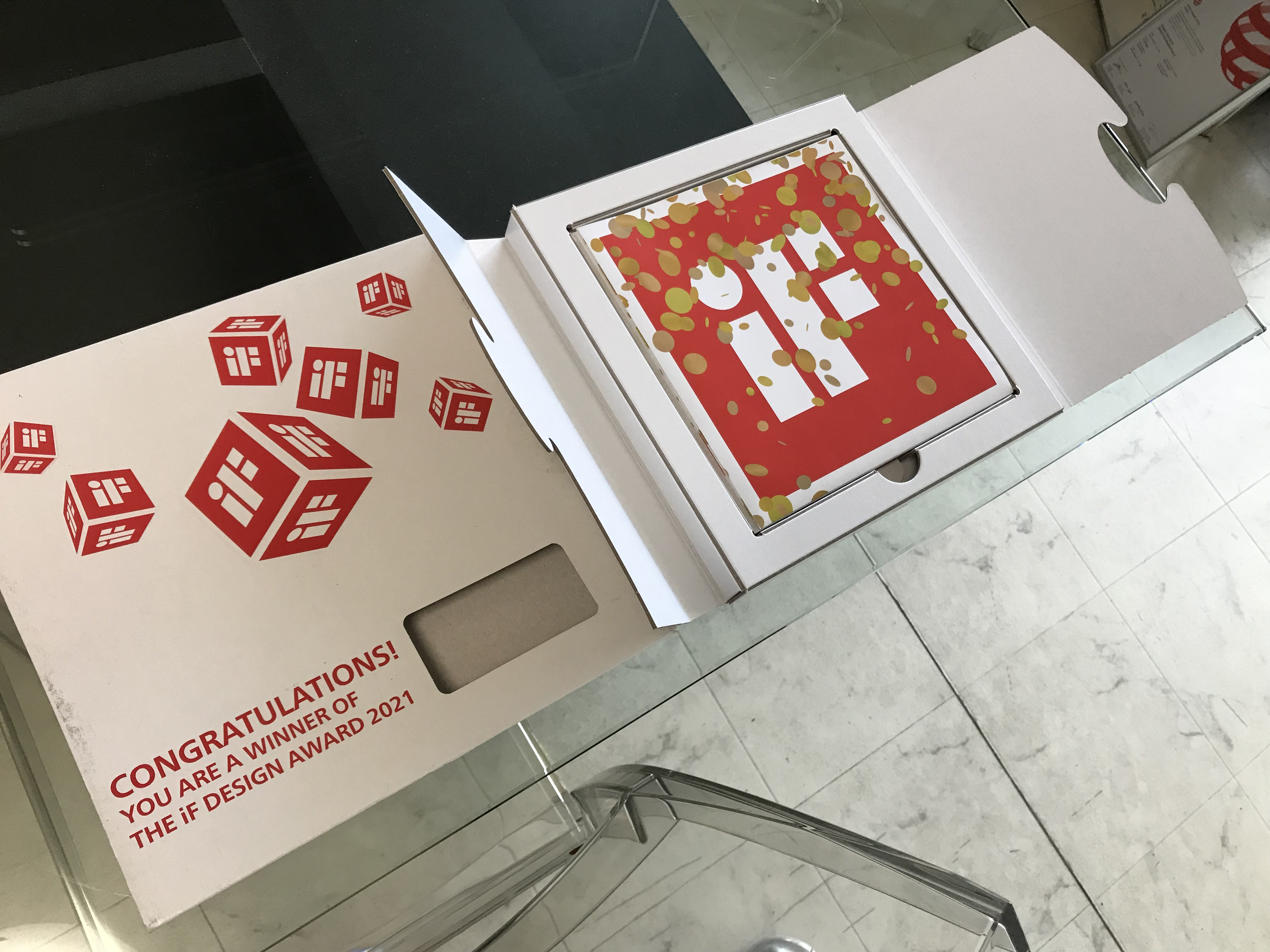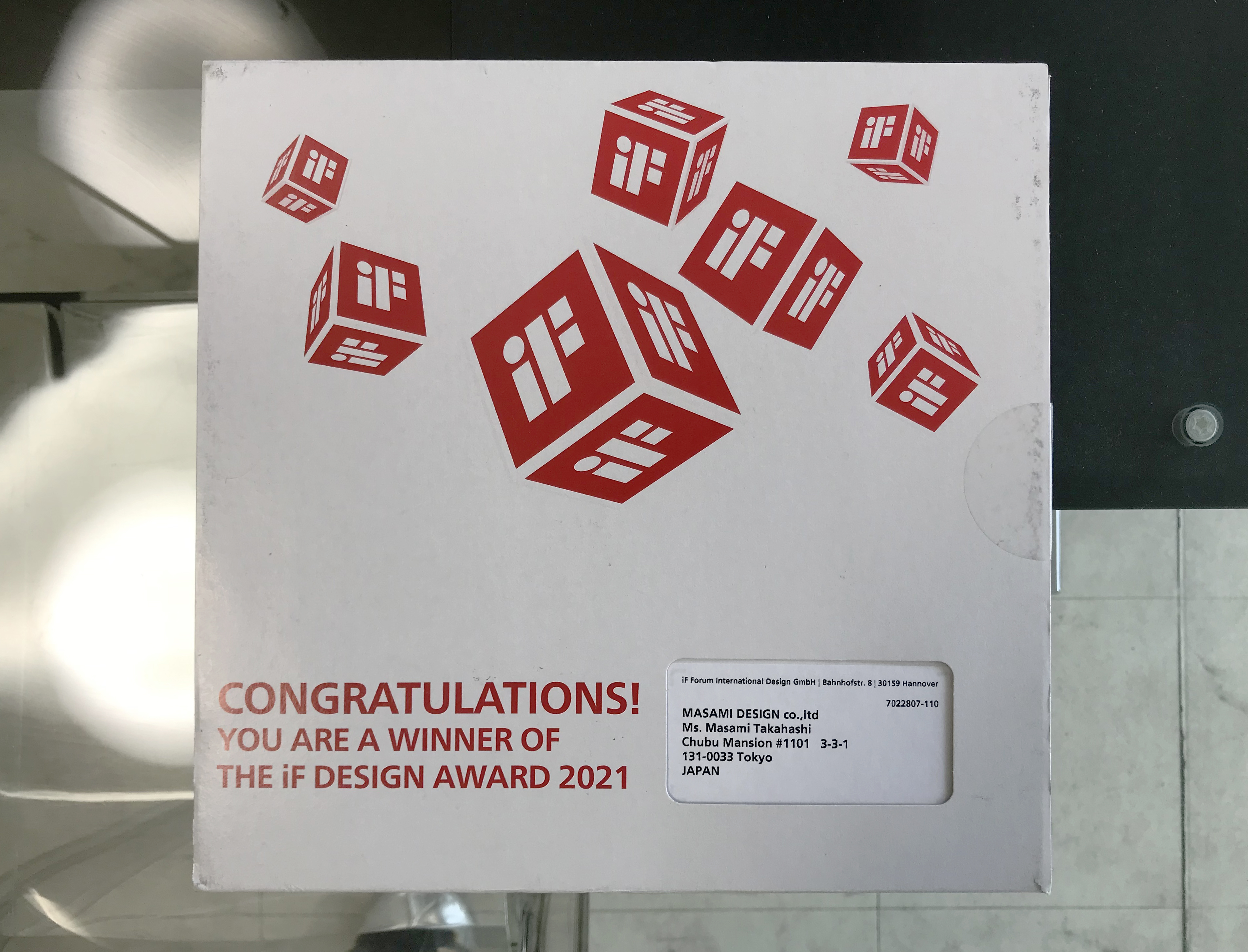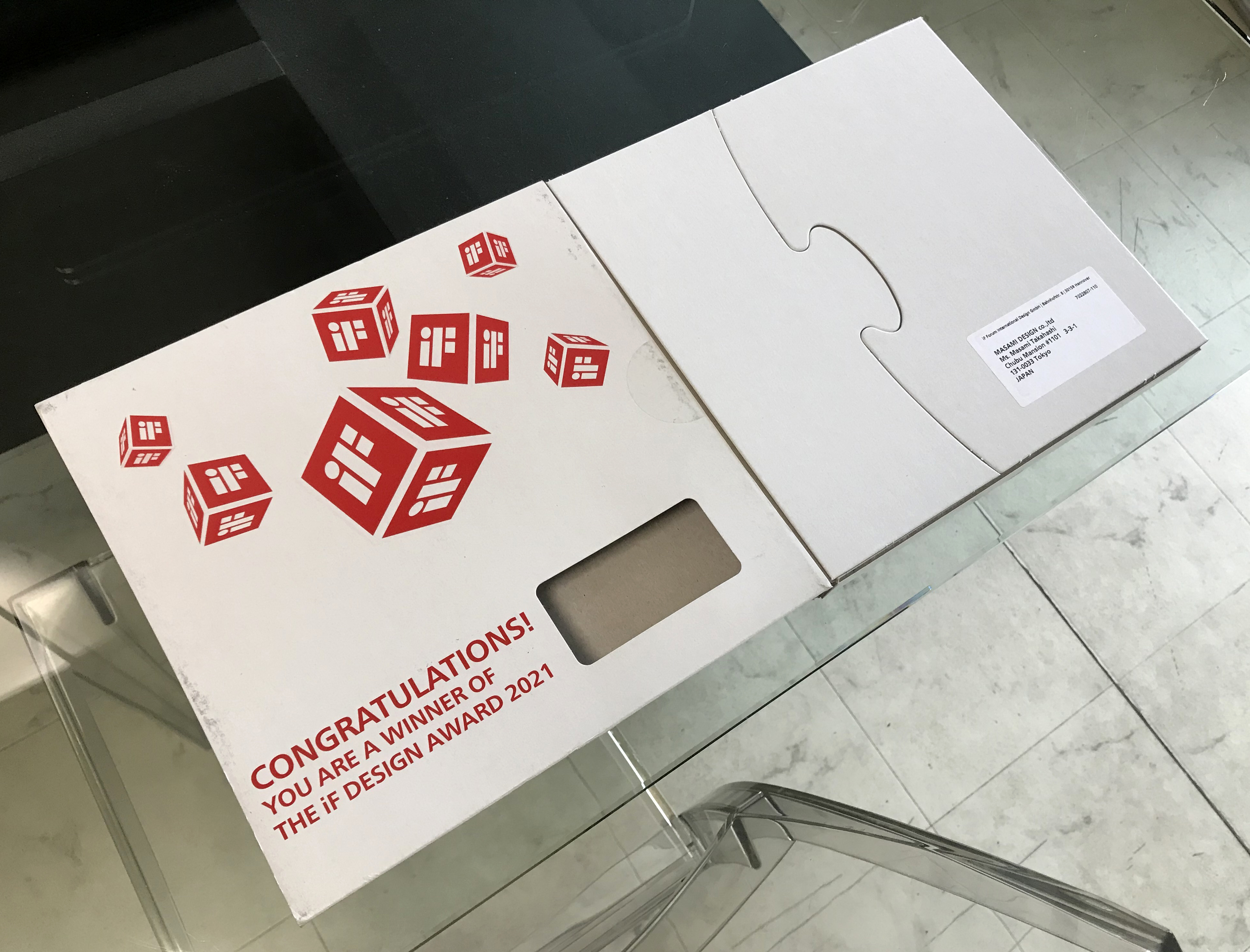この夏ドイツのiFより届きました、盾などの受賞セットと賞状、