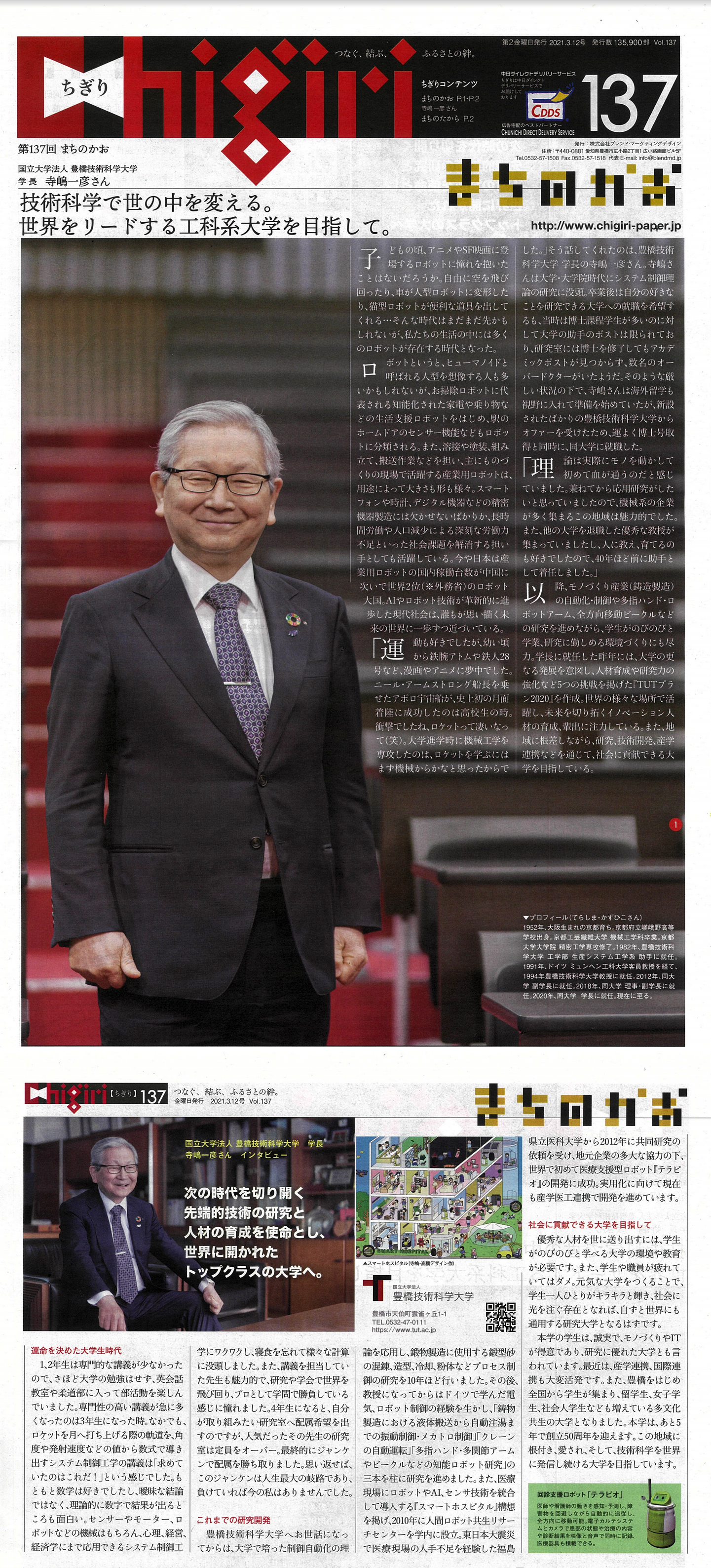 学長 寺嶋一彦先生の特集記事が掲載されました。